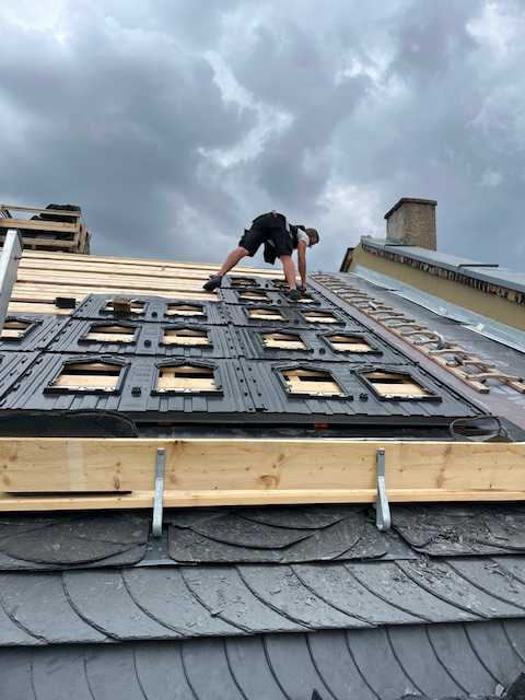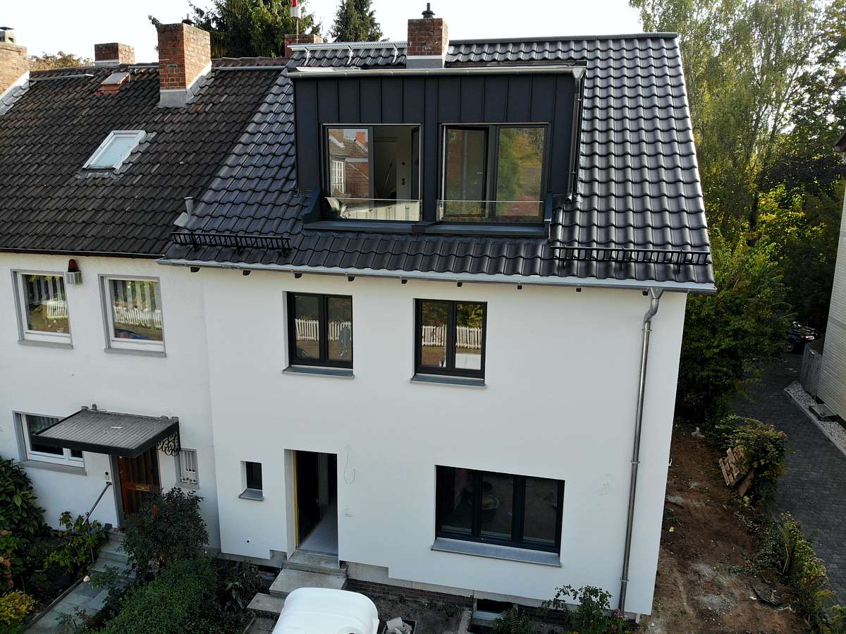 Energetische Steildachsanierung mit Fertiggauben und Ziegel